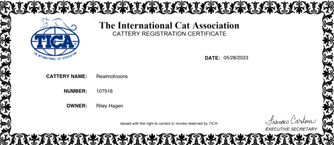 We are a small T.I.C.A registered cattery located in Salem, Oregon. We breed 100% European Maine Coons; all of our cats were imported from overseas. At Realm of Coons, we intend to focus on silver, shaded and smoke Maine Coons. August 2025, we welcomed our first polydactyl queen. I have always loved extra toes on kitties!