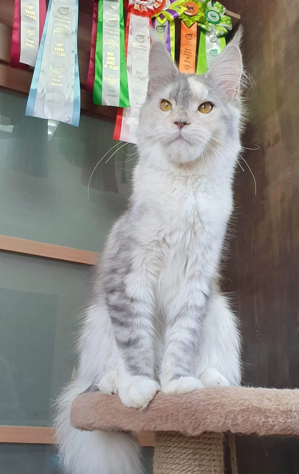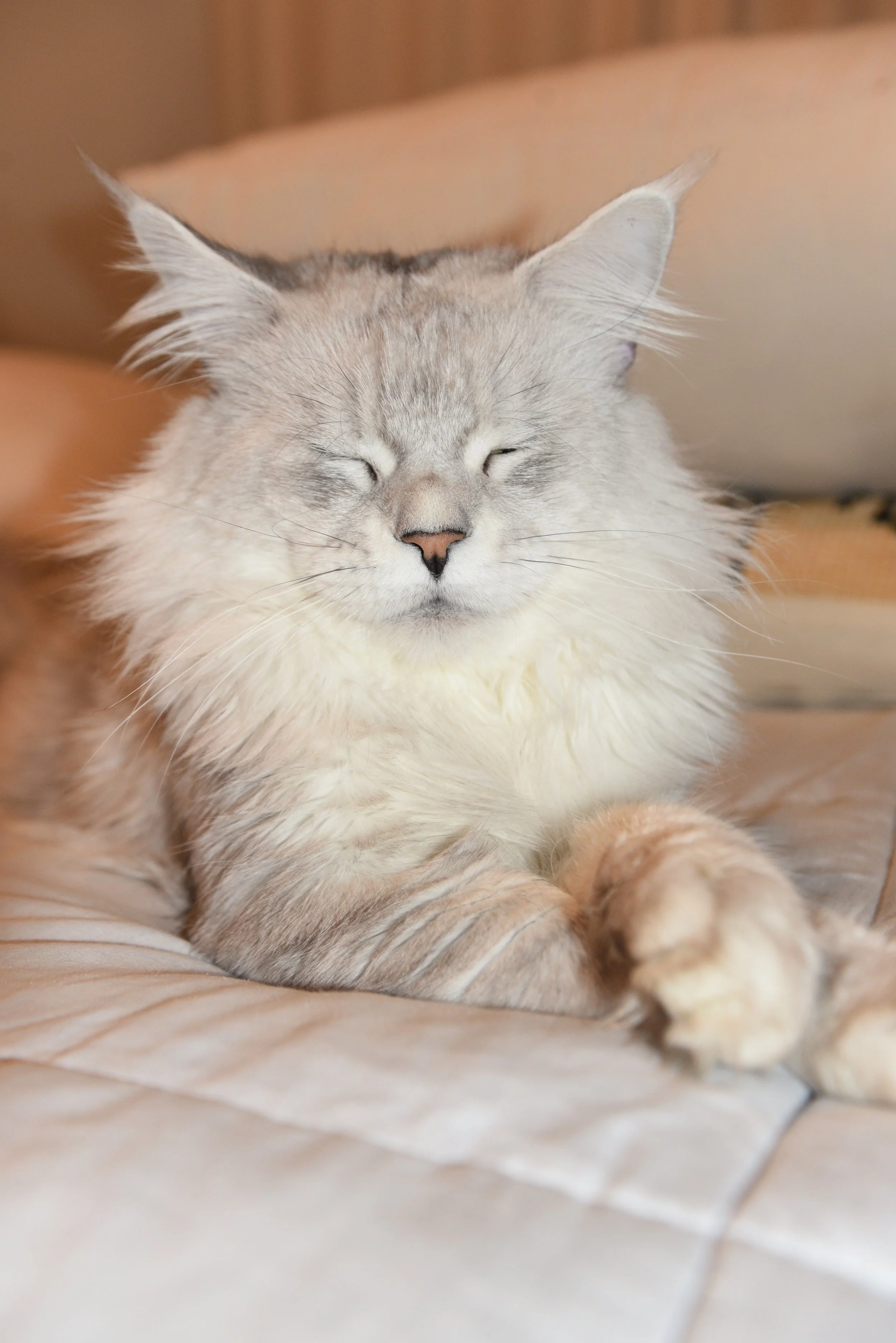 Gilbert is a sweet loving and big boy! We imported Gilbert when he was 5 months old. He’s since been raised around our two young children, so he does well around loud noises and sudden movements. Gilbert is one of our most social and laid back out of all of our felines. Gilbert loves to sit and bird watch. His favorite treats are lickables and dehydrated duck hearts. We feed our cats a mixture of raw, kibble and canned. Diversity of food is important to us; not only does it provide a variety of flavors, it helps support all their nutritional needs, avoid developing allergies and food preferences later in life.